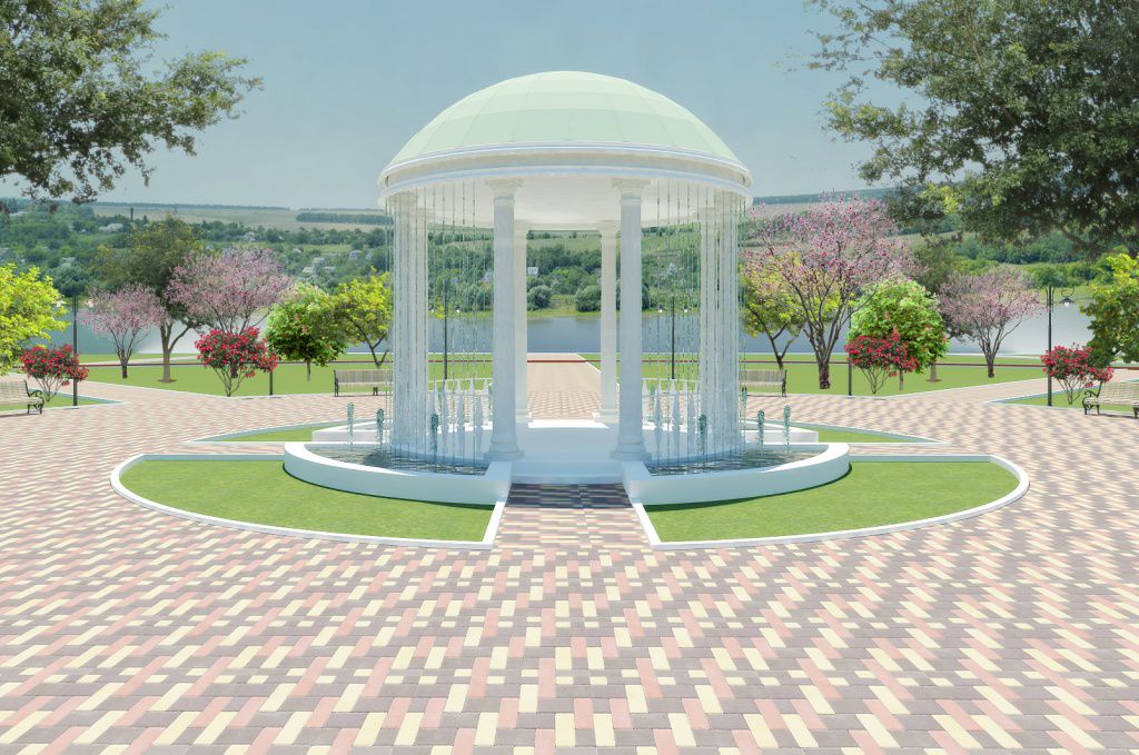 «Вокруг ротонды будет 4 фонтанчика. Плюс струйками будет стекать вода внутри самой ротонды, и в ночное время она будет освещаться, то есть будут падающие струйки, создавая иллюзию падающих световых лучей», – рассказал заместитель главы госадминистрации Рыбницкого района по строительству Александр Тищенко.