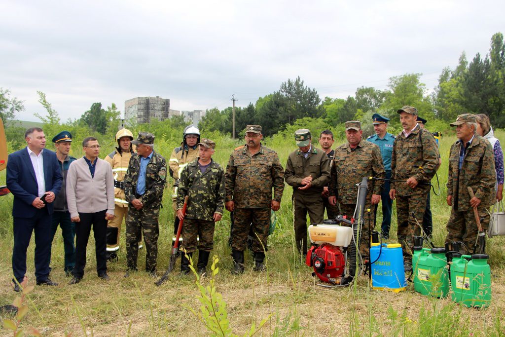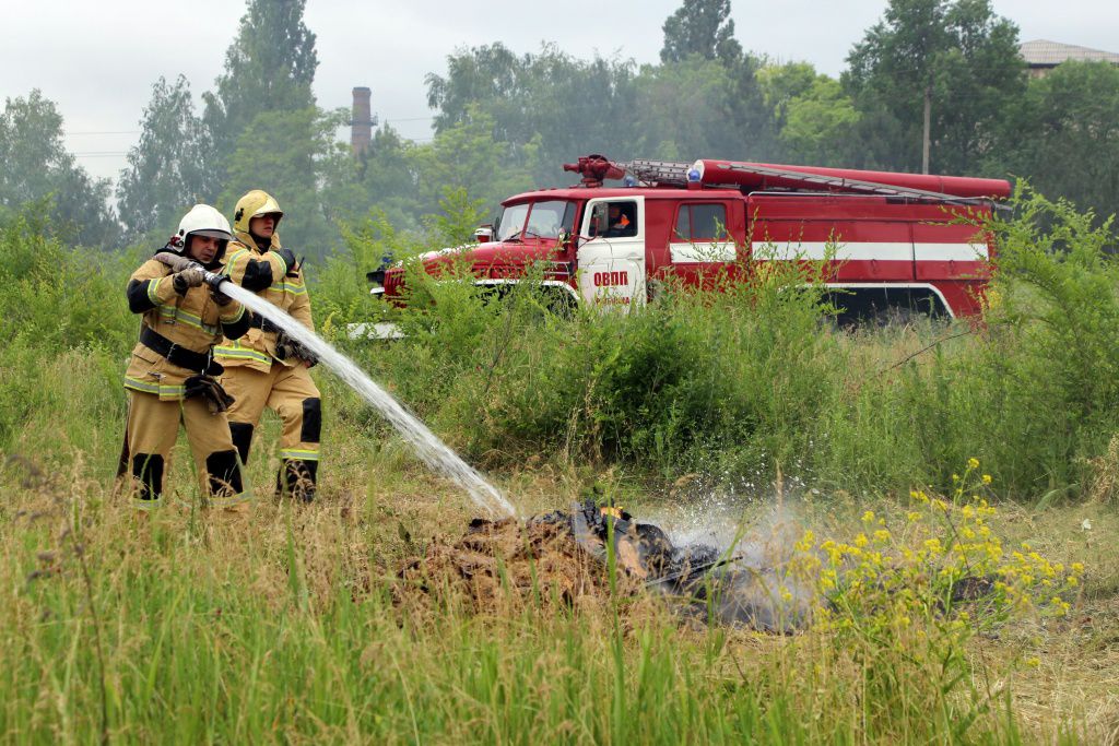 Учения прошли на улице Индустриальной. В чаще вспыхнула сухая трава. Первыми на место прибыли спасатели. Их задача – отсечь огонь от леса. В ход идут опрыскиватели и так называемые «хлопушки». Вскоре подоспели пожарные. В прошлом году им уже приходилось тушить настоящий большой пожар. Это было в лесу села Вадатурково. Говорят, самая большая сложность – рельеф и ветер.