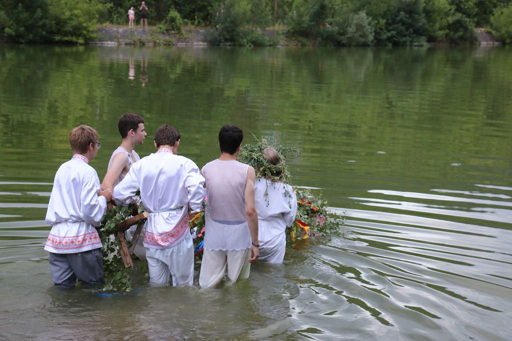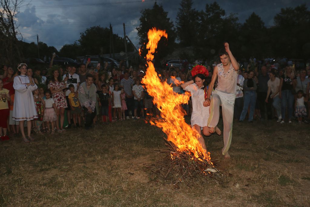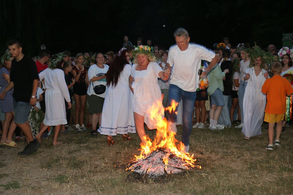 Как принято по обряду, Кострому отнесли на воду и утопили. Затем всех пригласили прыгать через купальский костёр. Традиционно девушки и парни, попарно, держась за руки, прыгают через огонь. Считалось, если во время прыжка их руки останутся вместе, то они повенчаны богом Солнца. А согласно народному поверью, так люди становятся здоровыми и набираются сил.