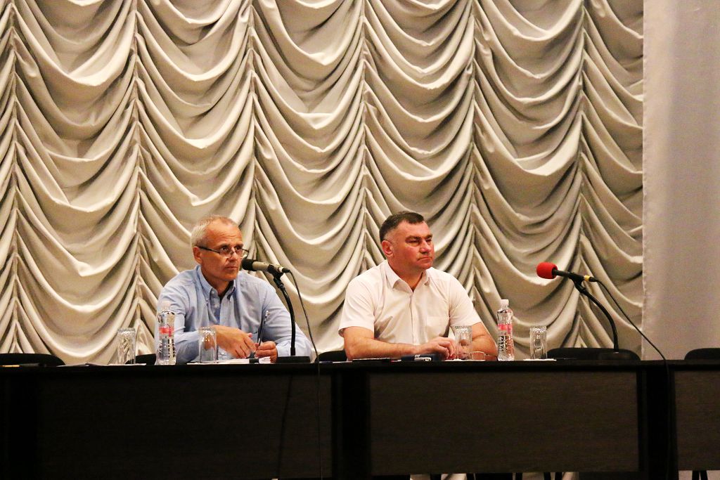 В минувший четверг в актовом зале городского Дворца культуры состоялась внеочередная 39 сессия 26 созыва Совета народных депутатов Рыбницкого района и г. Рыбницы. В работе сессии приняли участие глава государственной администрации Рыбницкого района и г. Рыбницы Виктор Тягай, депутат ВС ПМР Вадим Кравчук, заместители главы госадминистрации Александр Тищенко, Валентин Кравченко, управляющий делами госадминистрации Владимир Власюк, заместитель прокурора г. Рыбницы и Рыбницкого района Андрей Мержиевский, заместитель начальника Инспекции Счетной палаты по г. Рыбнице, Рыбницкому и Каменскому району Наталья Коваленко, начальник Финансового управления города и района Людмила Ольшанская, руководители управлений, организаций, силовых структур и ведомств. Вёл заседание председатель Совета народных депутатов Рыбницкого района и г. Рыбницы Вадим Лозовский.