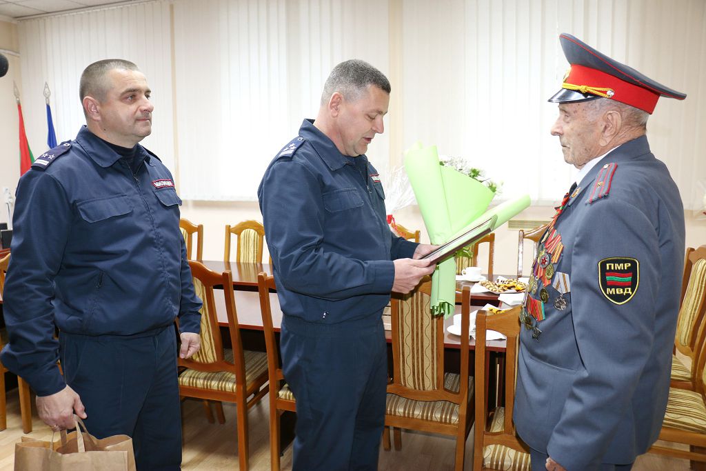 «Здравия желаю!», – в кителе и фуражке Филипп Оловягин бодро приветствует присутствующих. Глава государственной администрации зачитал поздравительный адрес президента ПМР Вадима Красносельского. В нём в частности говорится: «Всю свою жизнь вы посвятили службе, вначале в Советской Армии, затем в рядах милиции. Более 30 лет вы охраняли общественный порядок и покой мирных граждан. Вся ваша биография – яркий пример достойного служения закону. Доброго здоровья, счастья, бодрости духа и много светлых дней впереди!»