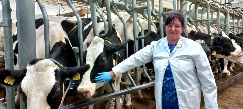 Работникам фермы вручили грамоты и благодарственные письма от президента Вадима Красносельского. Среди награжденных – управляющий фермой Сергей Сенденков. Грамотой отмечена и доярка Наталья Олейник, точнее, оператор машинного доения. На ферме, где все автоматизировано, Наталья работает уже 8 лет.