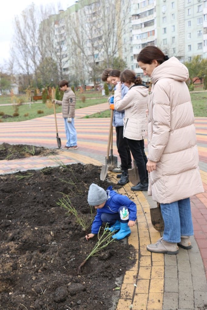 Внимание привлёк самый маленький участник субботника Арсений, которому всего три с половиной года. С мамой Аллой просто вышли погулять, и малыш с присущей детям непринужденностью уверенно подошел к будущей клумбе у ротонды, ровно придерживая саженец розы, скомандовал маме: «Давай, закапывай!» Семья живёт на другом конце улицы Вальченко, но каждый день приходят гулять в парк. Теперь у Арсения есть роза, посаженная своими руками.