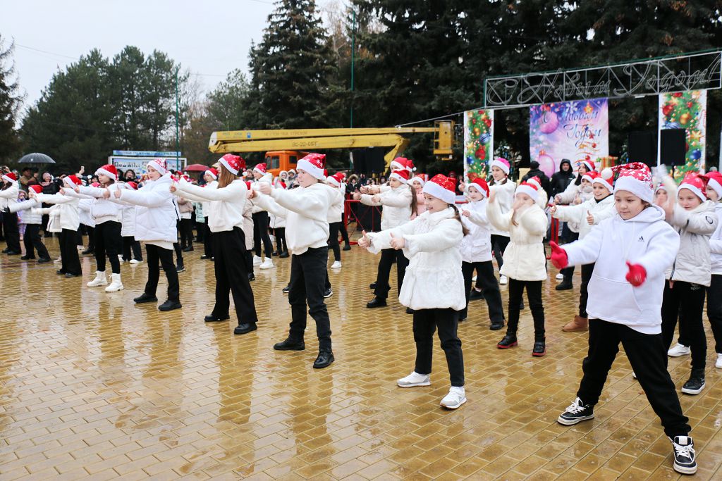 На городской площади не было свободного места – рыбничане от мала до велика окружили главный символ года в ожидании незабываемого представления. Под ритмичную мелодию и плеск дождя молодые дарования из танцевального коллектива «Стардэнс» исполнили зажигательный флеш-моб, ознаменовав яркое начало праздничной программы. Торжественность момента подчеркивала яркая иллюминация и новогодние арт-объекты.