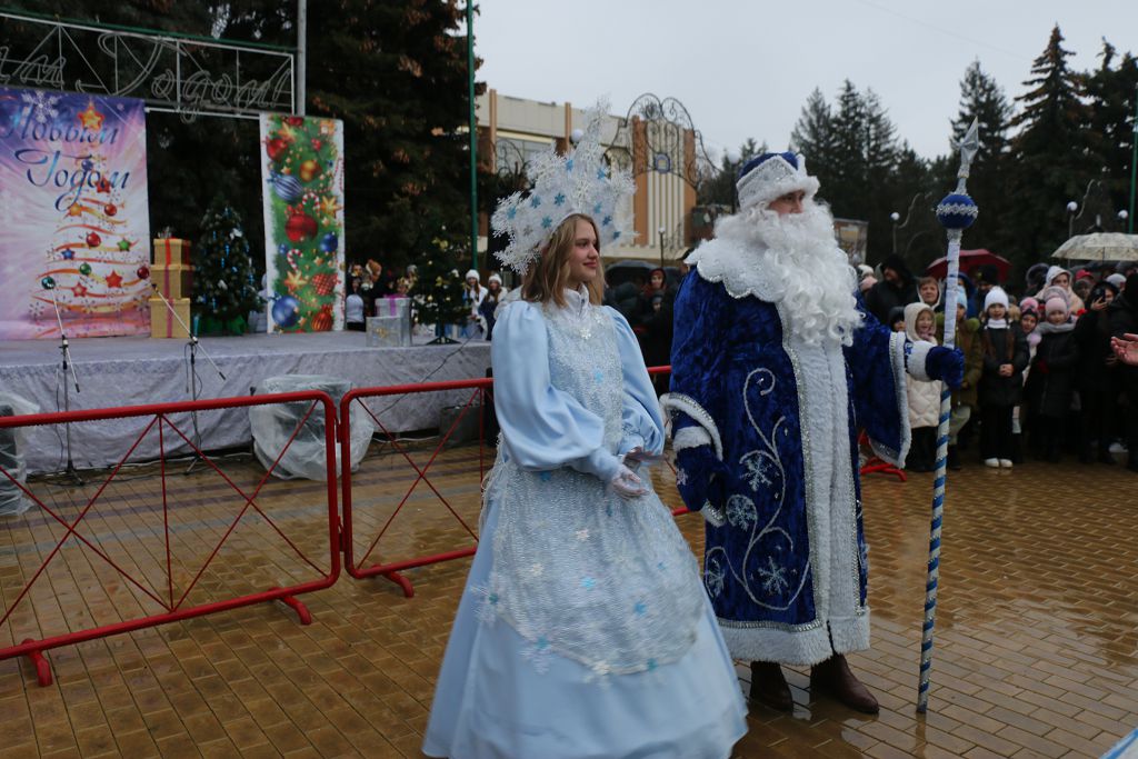 Но, к большому сожалению, усилившийся дождь не позволил артистам городского Дворца культуры провести запланированные развлечения, хороводы и гуляния для юных гостей. Но главное событие, из-за которого все гурьбой собрались на площади, – включение елочных гирлянд – все-таки состоялось. «Раз, два, три, елочка, гори!» – юные рыбничане волшебным паролем зажгли огни на главной елке.