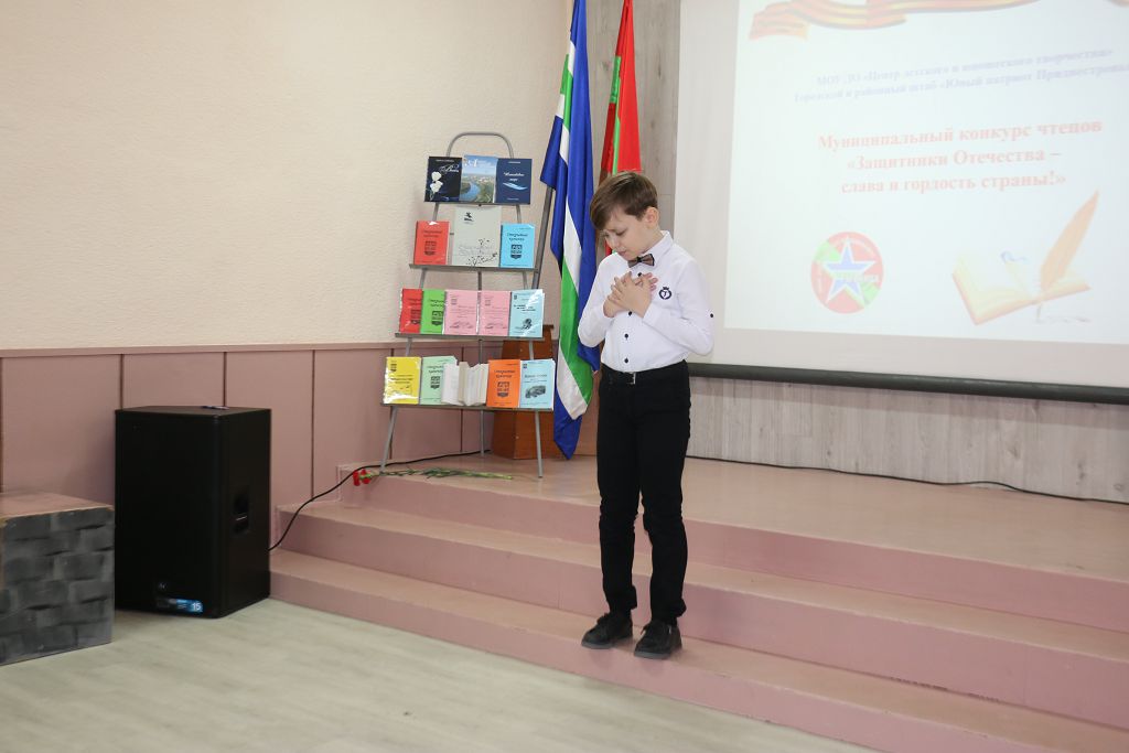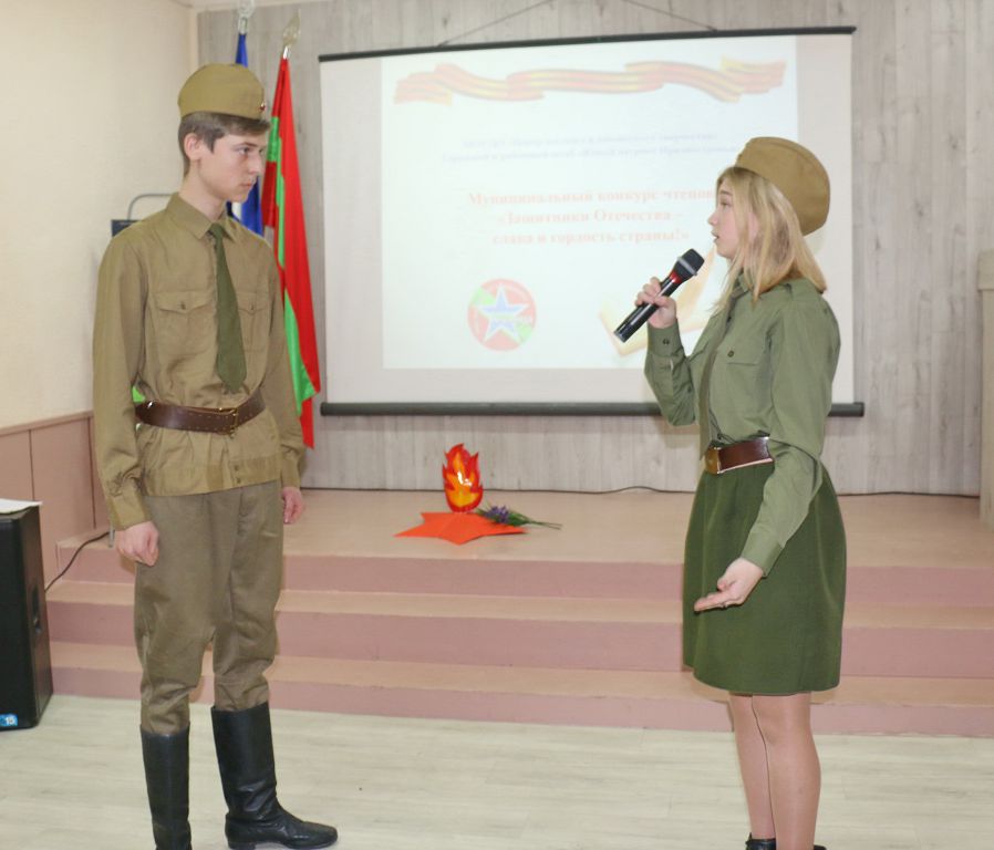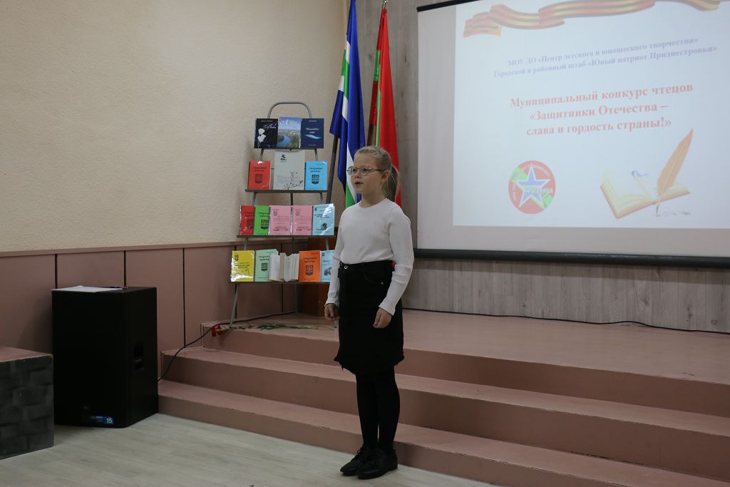Песни и стихи, рождённые войной, поднимали боевой дух солдат, вселяли уверенность в победу над врагом, помогали выстоять, преодолеть тяжёлые испытания. И сегодня эти произведения не смолкают, неся великую память о тех ужасных событиях, о героях, кто не страшась, отвоевывал мир, о тех, кто пал на поле боя, так и не попрощавшись навсегда со своими близкими и родными. Так в Рыбницком Центре детского и юношеского творчества состоялся муниципальный конкурс чтецов «Защитники Отечества – слава и гордость страны!» В нем приняли участие 103 школьника из 26 организаций образования. Мероприятие проводилось в рамках фестивального движения «Путь к успеху» и месячника оборонно-массовой работы «Я – гражданин ПМР». Его организаторами выступили Рыбницкое управление народного образования и ЦДЮТ. Как поясняет руководитель городского и районного штаба «Юный патриот Приднестровья» Татьяна Калина, конкурс направлен на воспитание чувства гражданственности, патриотизма, гордости и любви к своей родине, развитие навыка публичных выступлений, а также выявление одаренных детей.