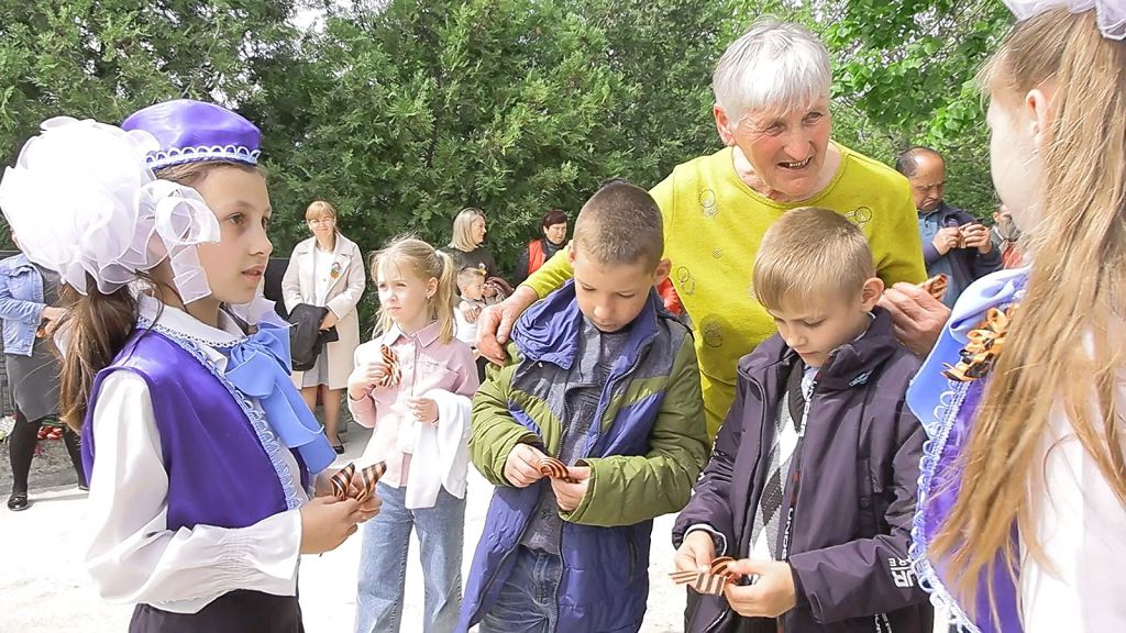 В этом году акцию «Геориевская ленточка» проводят в России и других странах мира в 20-й юбилейный раз. От партии «Обновление» жителям села раздали георгиевские ленточки. В свою очередь школьники подарили гостям ленточки, сделанные своими руками.