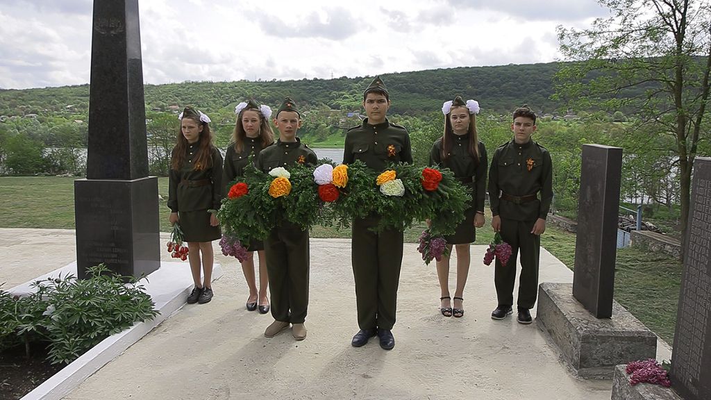 В Строенцах дали старт акции «Георгиевская ленточка». И это символично. В 1944-м село освободили первым в Рыбницком районе. У памятника – школьники в форме и с цветами. Здесь похоронены 2 танкиста.