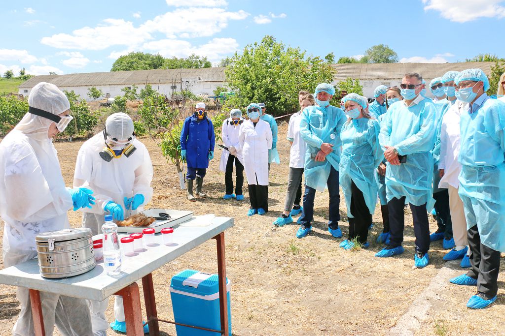 Село Буськи. Крестьянско-фермерское хозяйство Вячеслава Городецкого. Здесь, по легенде, заболела курица. Очаг заражения начал увеличиваться. На месте без промедления развернули мобильный пост. Во избежание распространения вируса сотрудники ГУпЧС совместно с ветеринарами поэтапно провели цикл мероприятий по карантину. За шлагбаум проходили только в защитных костюмах, перчатках и масках. Самой зрелищной и запоминающейся стала работа лаборатории по обследованию погибшей туши птицы. Лаборанты поэтапно демонстрировали процесс сбора анализов для изучения проблемы падежа птицы.