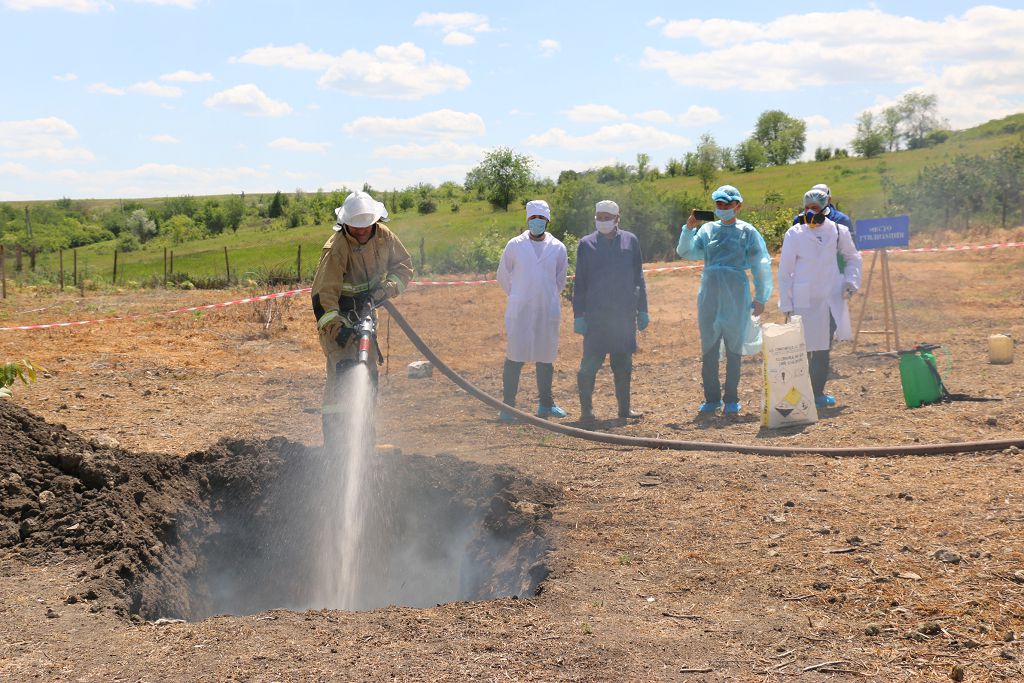 В Приднестровье реализуются меры, направленные на сохранение благополучной эпизоотической обстановки, одна из них – проведение специальных учений. В минувший четверг в Рыбнице прошли теоретические и практические тактико-учебные занятия по противодействию условного очага гриппа птиц на локальной территории. В них приняли участие министр сельского хозяйства Олег Дилигул, глава госадминистрации Рыбницкого района и г. Рыбницы Виктор Тягай, заместитель начальника Управления развития агропромышленного комплекса, главный государственный ветеринарный инспектор Сергей Корецкий, председатель комиссии по чрезвычайным ситуациям при госадминистрации Рыбницкого района и города Рыбницы заместитель главы Александр Тищенко, начальник отдела по делам гражданской обороны и чрезвычайным ситуациям по Рыбнице ГУПЧС МВД ПМР Владимир Амбросьев, ветеринары, съехавшиеся со всего Приднестровья, специалисты Центров гигиены и эпидемиологии, спасатели, пожарные, специалисты Гражданской защиты из Рыбницкого района и города Рыбницы, а также студенты Аграрно-технологического факультета ПГУ им. Шевченко и Тираспольского аграрно-технического колледжа им. Фрунзе. Мероприятие организовано при содействии Министерства сельского хозайства и природных ресурсов, госадминистрации Рыбницкого района и г. Рыбницы, а также ГУПЧС МВД ПМР, приуроченное к 10-летию реорганизации Республиканского Центра ветеринарно-санитарного и фитосанитарного благополучия.