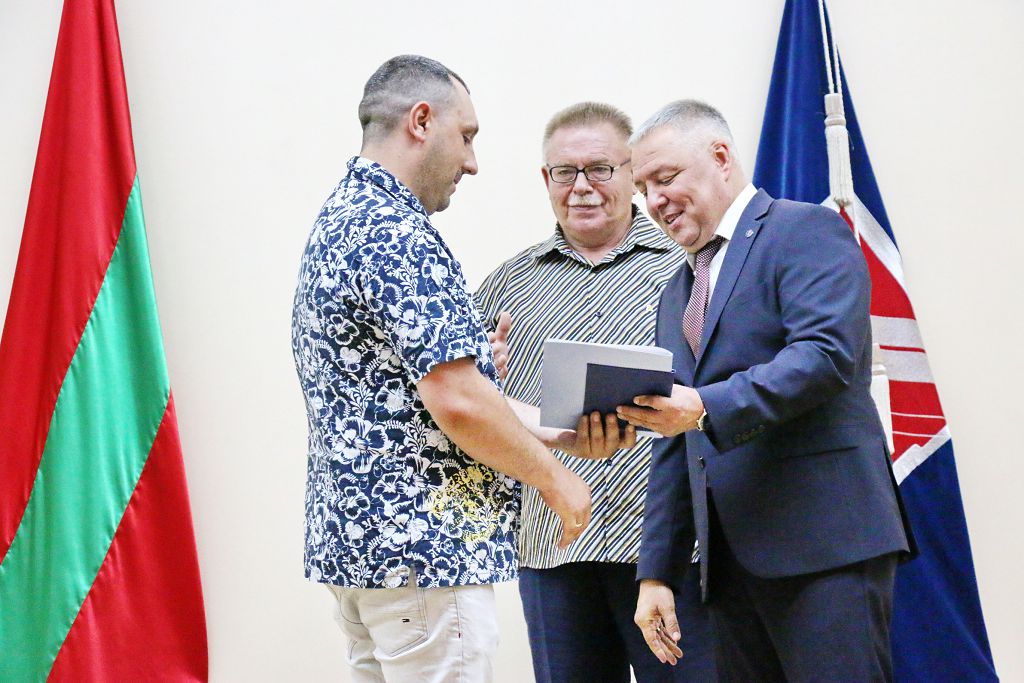В ходе торжественного мероприятия состоялось вручение дипломов первому выпуску студентов в рамках пилотного проекта между Приднестровским госуниверситетом и ММЗ. 16 молодых людей получили дипломы по специальностям «Электроэнергетика и электротехника», «Технологические машины и оборудование» и «Автоматизация технологических процессов и производств».