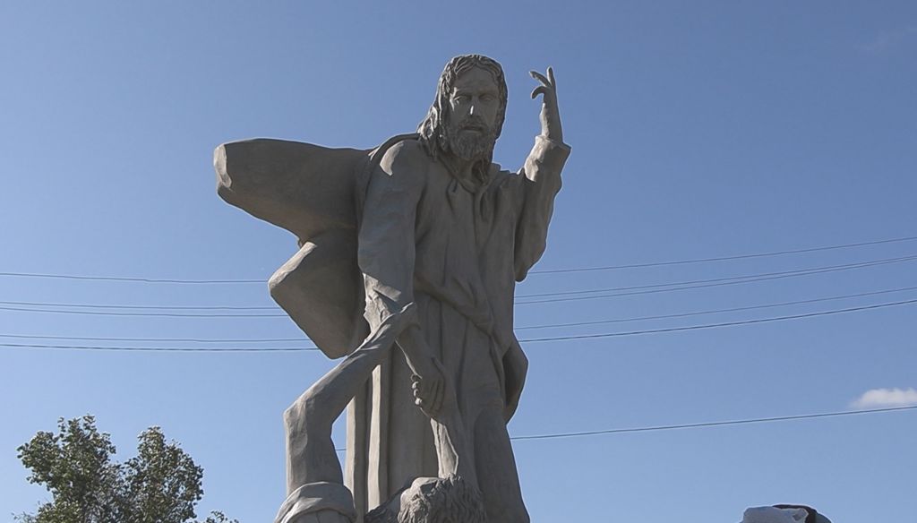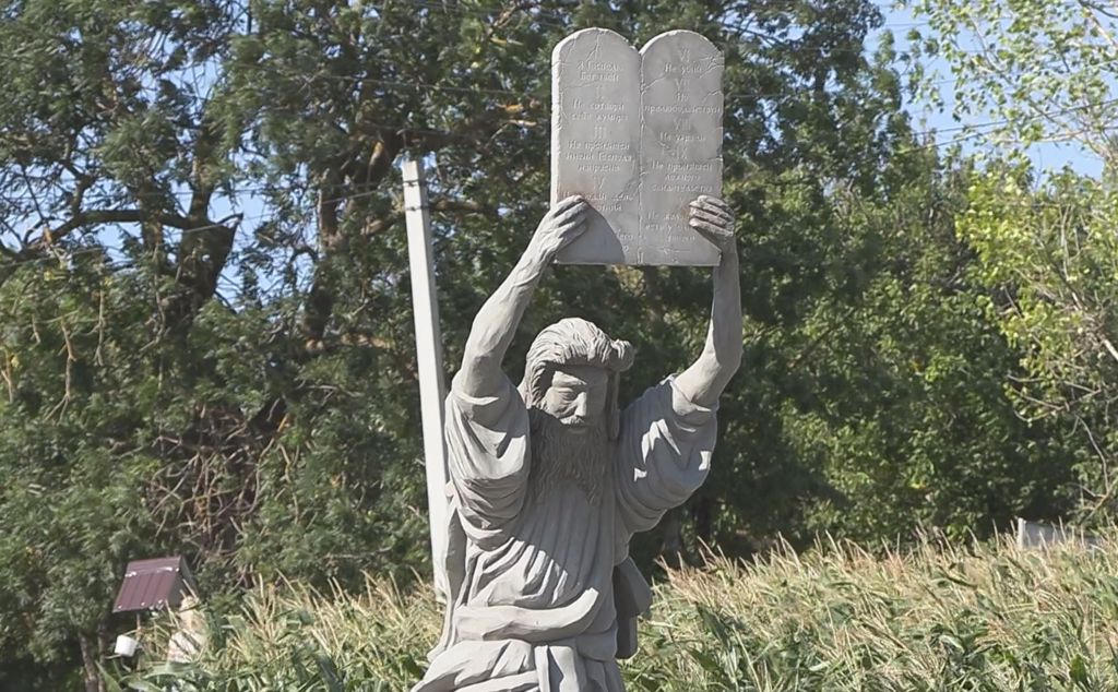 Первая скульптура Библейского парка – гнев Моисея. По преданию, пророк получил от Бога 10 заповедей. Но разгневался, увидев, что народ поклоняется золотому тельцу. Сейчас Белые создают еще одну сцену — спасение Петра. На скульптуру ушло около 20 мешков цемента и полторы тонны песка. Она расскажет еще одну историю.