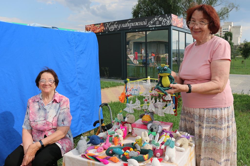 Рядом с палаткой детских игрушек расположилась рукодельница Тамара Николаевна. На её прилавке работы, выполненные в технике ручного вязания крючком. Игрушки в виде зверюшек и ангелочков выполнены из обычных вязальных ниток, а более изящные – из катушечных ниток. «Мне это доставляет удовольствие, в последнее время больше стала игрушки вязать, людям очень нравится», – поделилась рыбничанка. Кстати, игрушки не только красивые и милые, но и функциональные, например, задуманы как ключницы, оргинально и удобно.