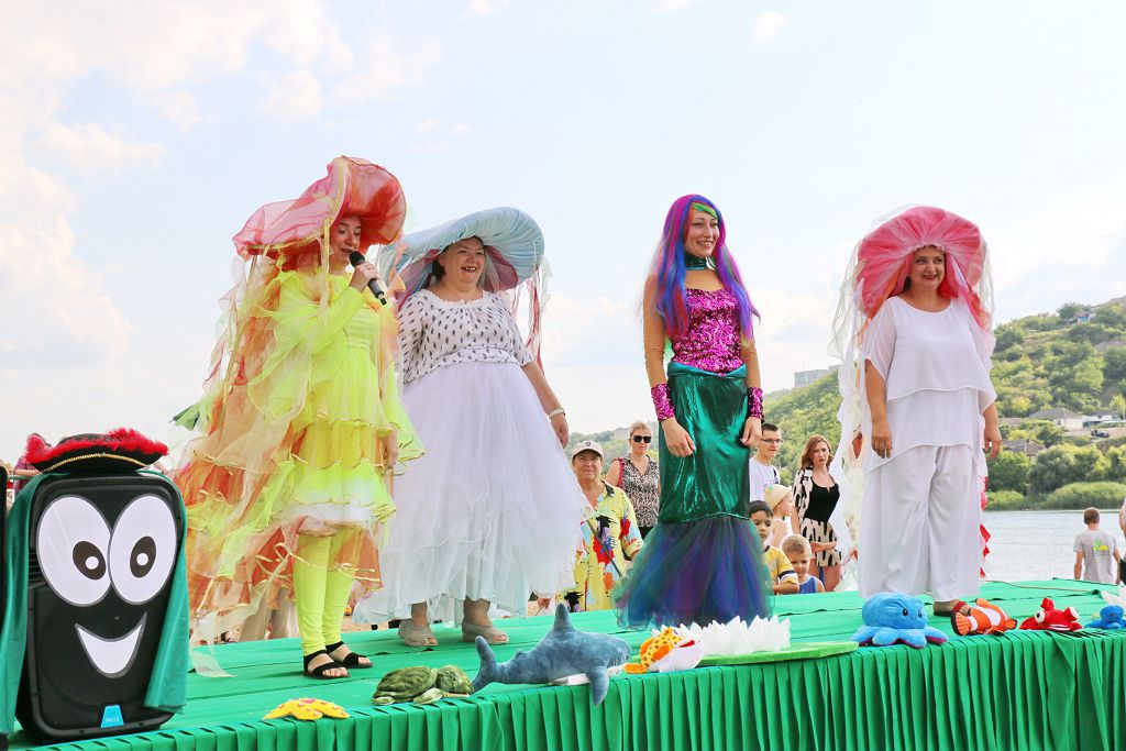 Вначале в толпе появилась свита Нептуна – медузы и русалки, они организовали коридор для прибытия царя. И вот все бурно приветствуют главного гостя. Он приближался к центру событий по Днестру: вместо большой колесницы катер, а в руках трезубец. Виновник торжества – сам Нептун сошёл на берег, окруженный многочисленной свитой и любопытными детишками. Далее последовала эстрадно-игровая программа для смешанной аудитории. Надо сказать, что данный праздник как событие очень нравится и взрослым, и детям. Танцы, песни, смекалка и находчивость помогли участникам мероприятия выйти «сухими из воды». Морские обитатели устроили весёлую развлекательную программу с загадками, песнями и танцами. Пираты проверили, как ребята умеют веселиться и играть. А помогла им в этом волшебная колонка, умеющая говорить и раздавать задания. Выступление коллективов Рыбницкого Дворца культуры, спортивные состязания и пенная вечеринка сделали этот вечер эмоционально насыщенным и оттого незабываемым.