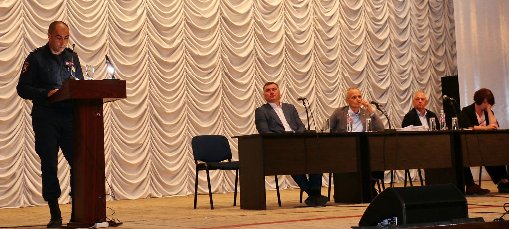 Ещё один вопрос повестки дня – о безопасности дорожного движения в Рыбницком районе и г. Рыбнице. Исполняющий обязанности начальника ОГАИ Рыбницкого ОВД Денис Ушаков представил информацию по десяти пунктам проведённой работы, касающимся агитации и пропаганды среди населения о соблюдении Правил дорожного движения и поведения на дорогах через СМИ, нанесения линий разметки и установки дорожных знаков, установки ограждений для ограничения передвижения населения через проезжую часть вне пешеходных переходов, устройства искусственного освещения дополнительно на нерегулируемых пешеходных переходах.