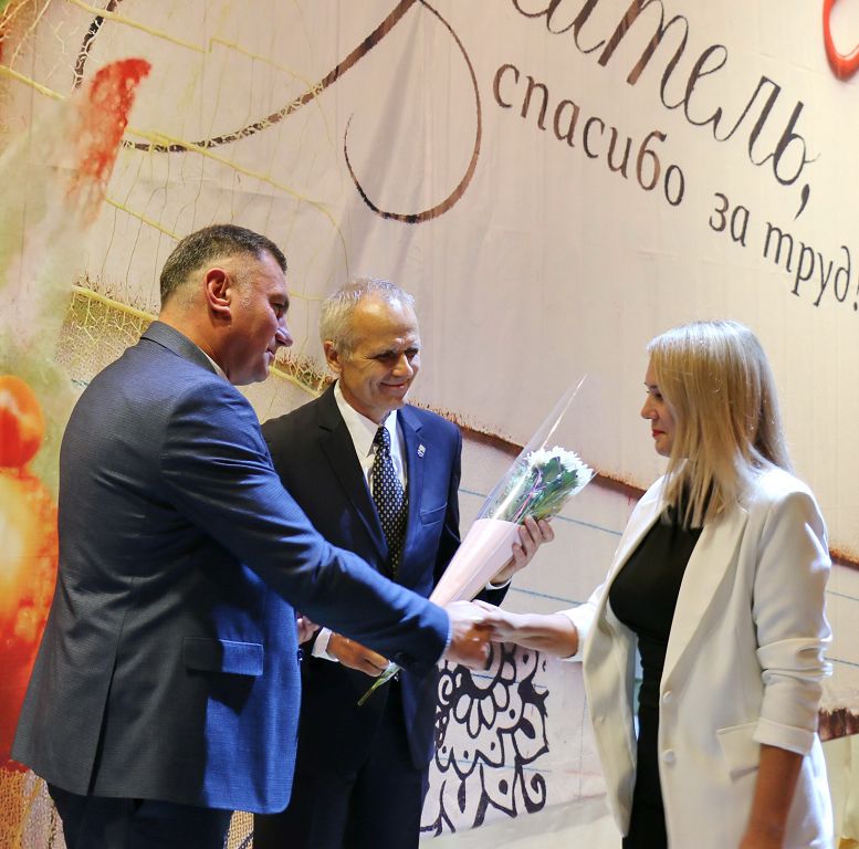 К ее словам присоединился глава госадминистрации Виктор Тягай, поблагодарив учительское сообщество за нелёгкий труд. «Вы не просто передаёте знания, а закладываете основу, на которой строится жизнь каждого ребёнка, каждой семьи и в конечном итоге всего нашего общества. Вы готовите будущее нашего государства. И то, каким оно будет, во многом зависит от опыта и знаний современного педагога, – подчеркнул Виктор Викторович. – Вы внедряете новые технологии, разрабатываете творческие уроки, ориентированные на потребности каждого ученика. Учите наших детей быть готовыми к вызовам будущего. Рыбницкое образование находится на высоком уровне. Подтверждение тому – достижения наших ребят. За 2023-2024 учебный год – 224 призовых места на конкурсах международного и республиканского уровней. Наши дети под мудрым наставничеством педагогов достойно представляют город и занимают призовые места на республиканских соревнованиях».
