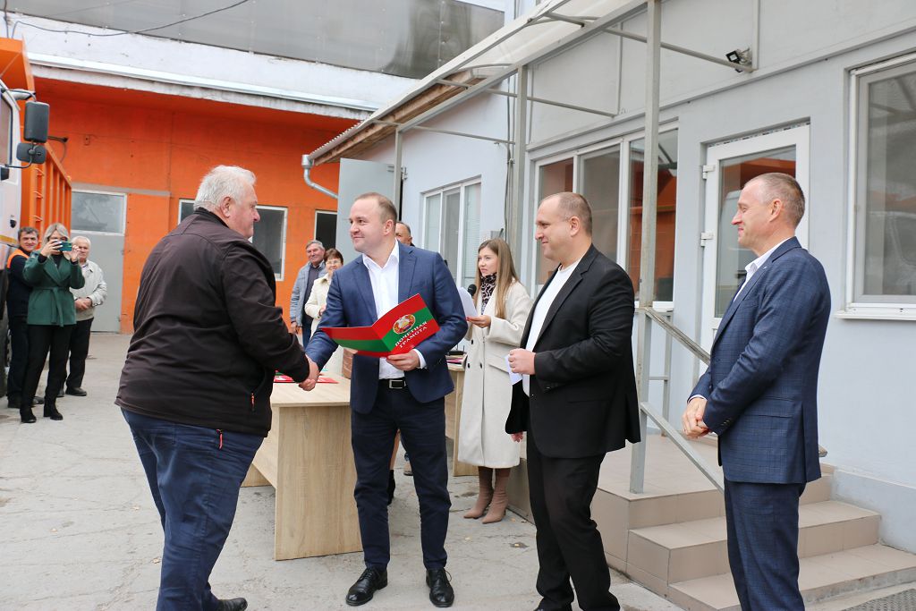 Накануне своего профессионального праздника – Дня автомобилиста – предприятие чествовало своих лучших работников. Разделить радостное событие пришли глава госадминистрации Рыбницкого района и г. Рыбницы Виктор Тягай, председатель Совета народных депутатов района и города Вадим Лозовский, начальник Госслужбы транспорта и надзора Министерства экономического развития Артем Федоренко, председатель Рыбницкого территориального объединения профсоюзов Анатолий Дыньговский.
