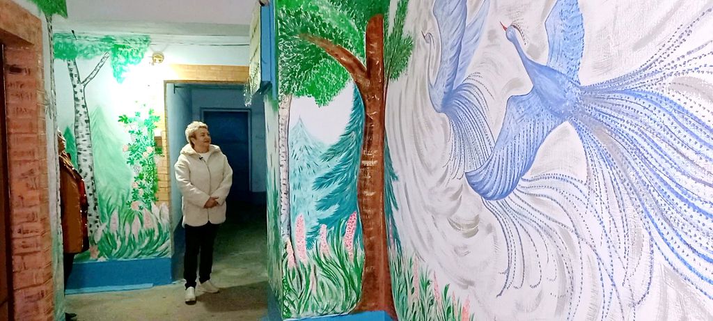 «У нас живет Альбина, художница наша, которая расписала свой этаж. Здесь она изобразила пару птиц. Двери лифта, как замок какой-то. Постепенно мы планируем так все площадки разукрасить, чтобы приятно было», – говорит Наталья Крючкова.