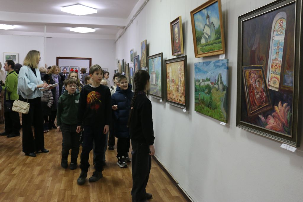 6 февраля. 14.00. Рыбницкая картинная галерея. Эта площадка стала местом притяжения десятков посетителей. Здесь яблоку негде было упасть: от мала до велика желали прикоснуться к чарующему миру изобразительного искусства, наполненного религиозными мотивами. «Кицканская обитель», «Псков. Церковь св. Николая», «Во рву Бендерской крепости» – эти и многие другие работы пронизаны особой энергетикой одухотворенности, чистотой помыслов и светом. Духовный мир, монументальная архитектура, портреты священнослужителей, а также пейзажи и натюрморты можно было наблюдать на полотнах мастеров кисти. Каждая картина – как целая вселенная, погружаясь в которую забываешь о суете мирской и проблемах. Здесь передан новый взгляд на историю человечества, неиссякающий интерес к категориям вечности и бытия.