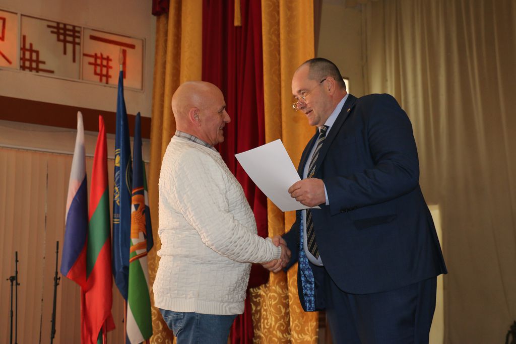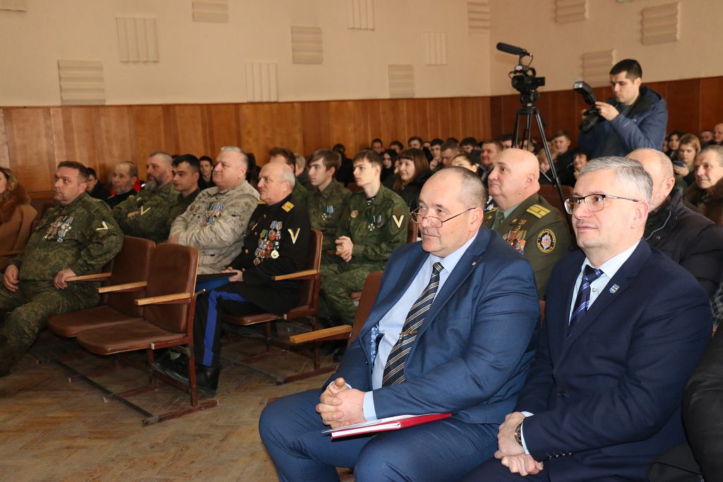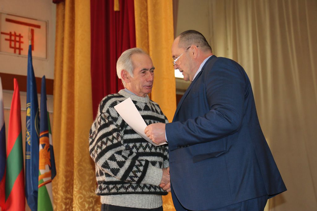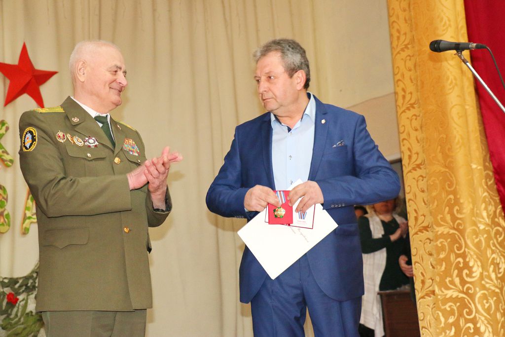 «Поздравляю Вас с Днём защитника Отечества и годовщиной образования общественной организации. Выражаю благодарность активистам ветеранской организации, которые за столь небольшой период времени провели большую духовно-нравственную работу по патриотическому воспитанию молодёжи. Вектор вашей направленности правильный, так держать!» – поздравил присутствующих заместитель главы госадминистрации Юрий Молдовский. Слова поздравлений прозвучали в адрес всех защитников Отечества, военнослужащих и ветеранов. «История развивается циклично, и нам довелось жить в непростое время. Уверен, в случае необходимости все встанут на защиту Родины, и не предадут традиций наших предков. Но надеюсь, что все военные навыки военнослужащих останутся только на картах. Всем доброго здоровья и мирного неба!» – пожелал Юрий Пантелеевич.