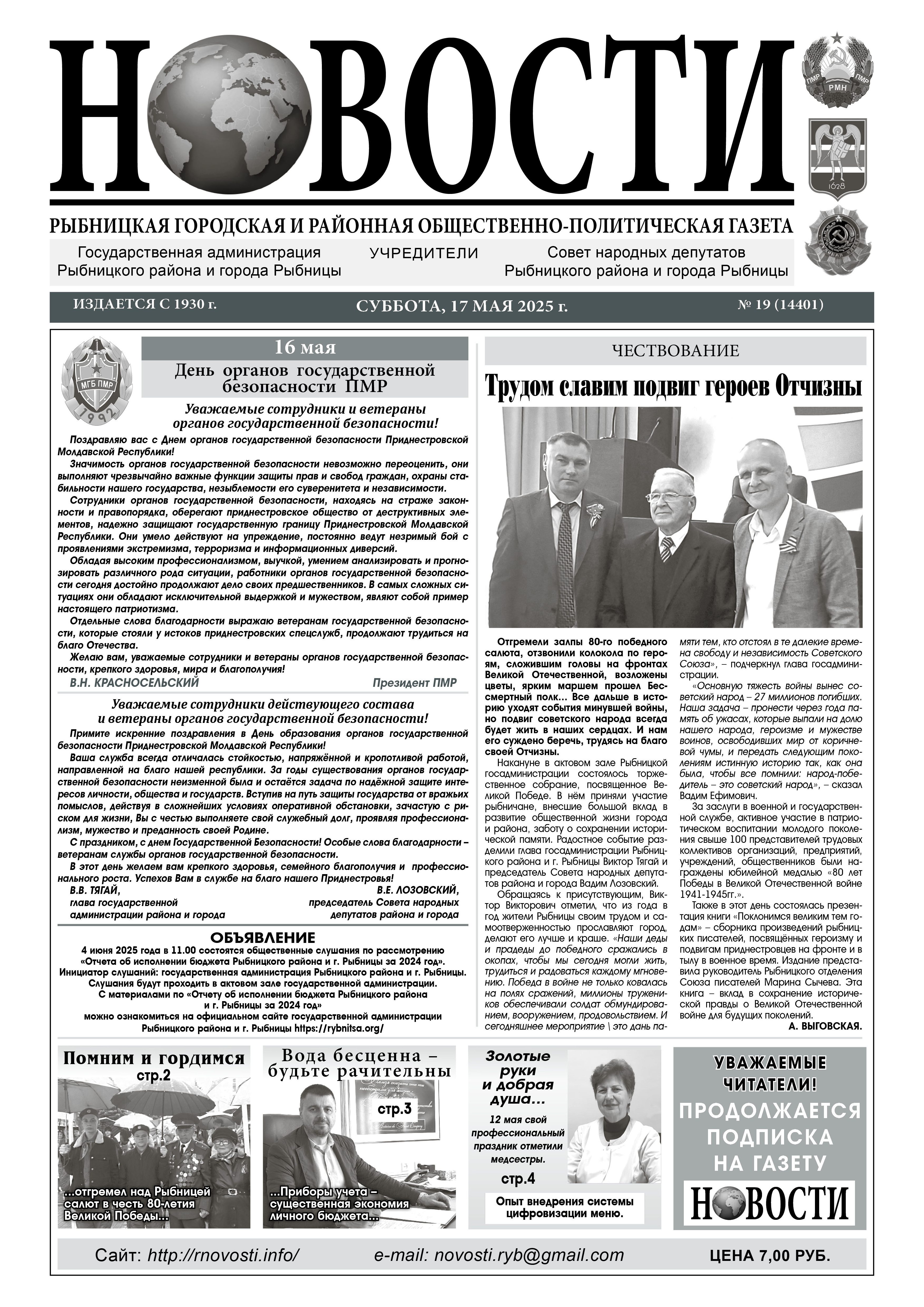 Газета Новости    18.05.2025 26.05.2025    Комментариев к записи №19 стр.1(2025) нет
