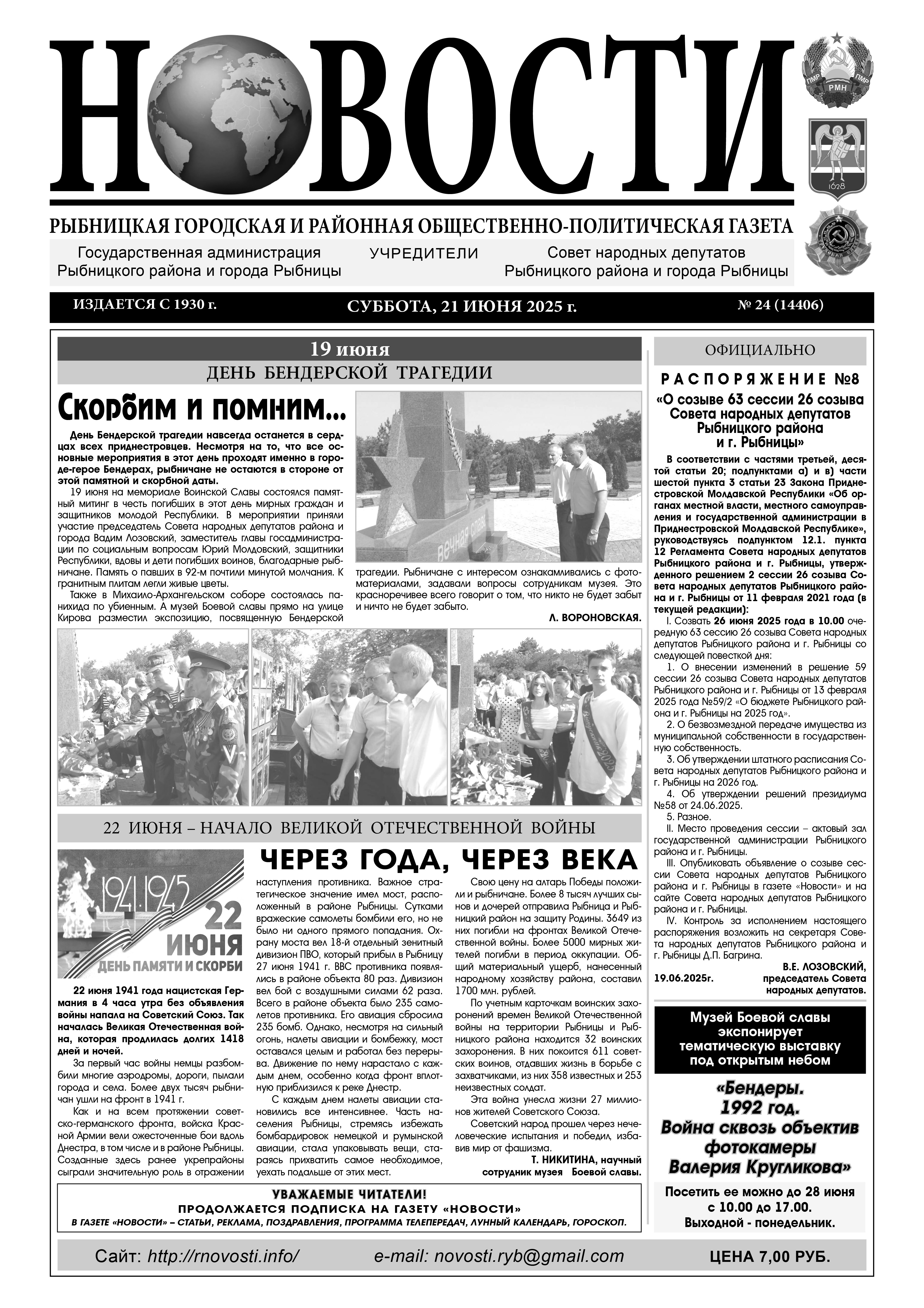 Газета Новости    23.06.2025 30.06.2025    Комментариев к записи №24 стр.1(2025) нет