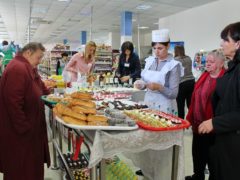 Магазин «Байкал». Десятки горожан с большим интересом разглядывают представленную в фойе продукцию. Булочки, пирожные, торты – ароматная выпечка кондитерского цеха так и манит попробовать ее. Здесь же рядом «Добрая вода»… Подробнее »