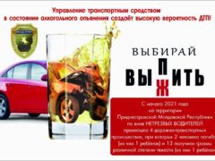 В г. Рыбнице и Рыбницком районе сотрудники ОГАИ Рыбницкого ОВД проводят агитационно-профилактические рейды в рамках акции «Трезвый водитель». Главная цель — уменьшить количество ДТП с участием водителей в состоянии опьянения…. Подробнее »